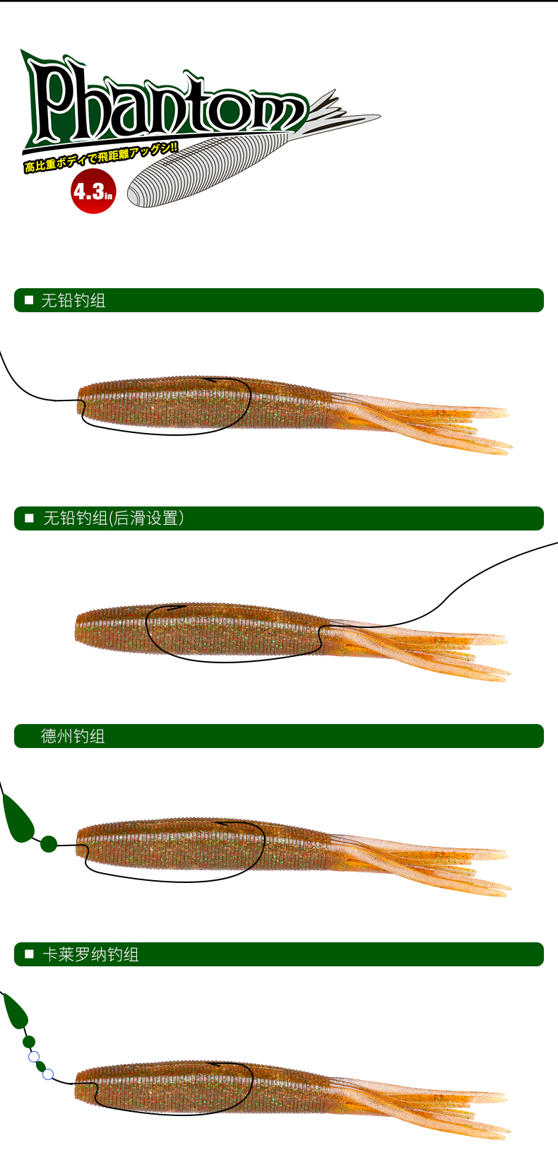 高比重无铅钓组摇尾虫115mm/8.3g(6只装) Soft Bait